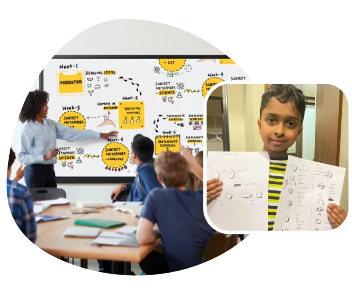 A guided practice where students turn class lessons into sketchnoted pages — helping them retain more and enjoy studying.