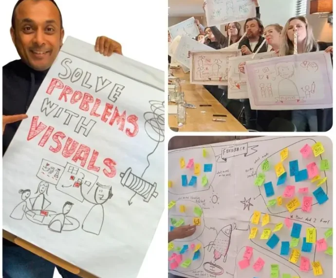 “I certainly did learn a new set of skills: I never knew I could be drawing, let alone expressing my thinking with doodles. What a revelation! Also what a great day of fun- Piyuesh’s energy is contagious. His drawing skills a match to his teaching ability. I can only recommend this workshop as an effective team building and training day !”