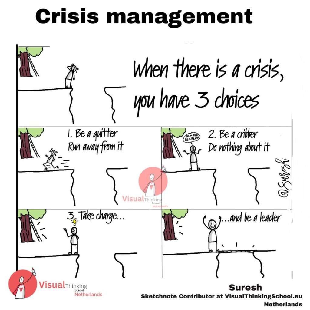 When faced with a crisis, we have three choices: to quit and run away, to crib and do nothing, or to take charge and lead. Each response carries its own set of consequences and opportunities. By understanding the implications of each choice and adopting a proactive approach, we can navigate crises more effectively. Embracing leadership in times of crisis not only helps in resolving the immediate situation but also strengthens our ability to handle future challenges. Remember, in every crisis lies an opportunity for growth and transformation. Choose to take charge and be a leader.