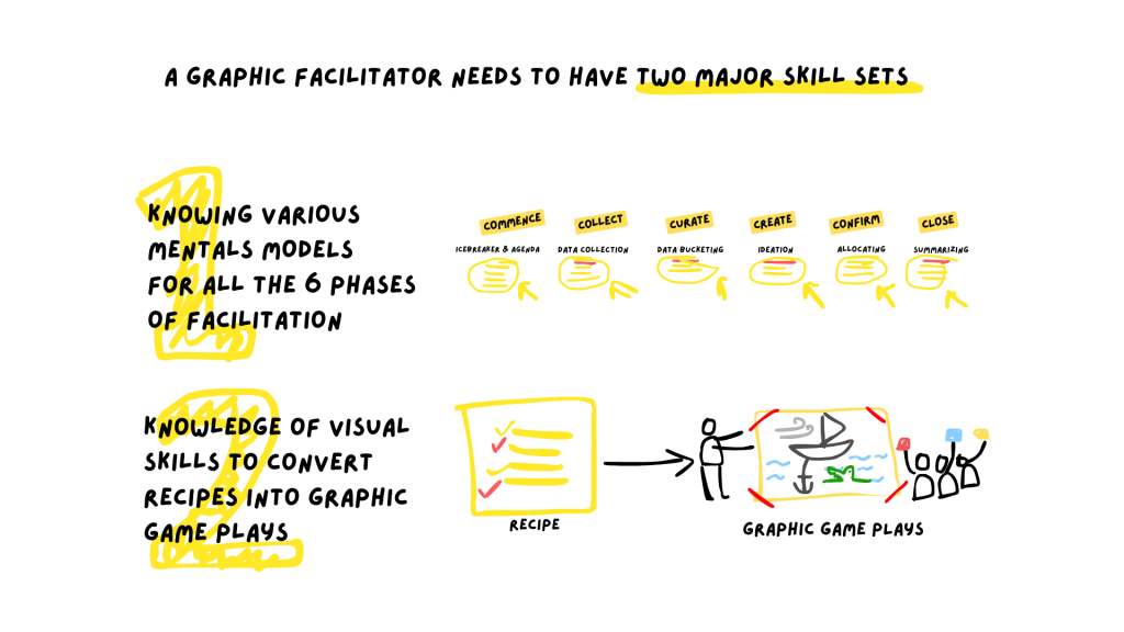 Facilitator then converts this facilitation recipe into graphic games for the final execution with the participants. This requires very strong hold on all the four visual skills explained above